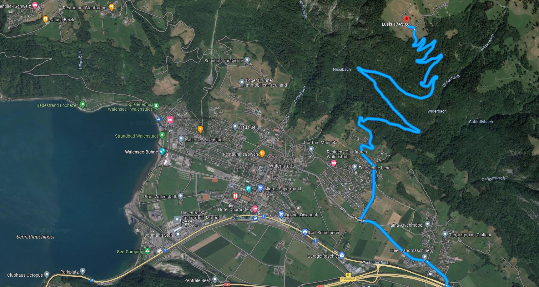 - ab Camp ca. 21km 30min ; davon ca. 5km Bergaufstieg ab Walenstadt